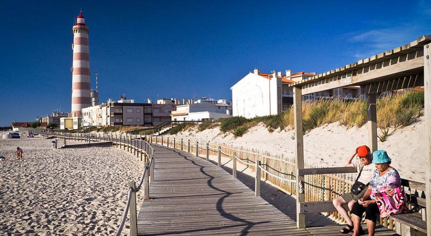The lighthouse is situated along the southern mouth of the Vouga River, in the village of Barra, along the Avenida Fernão de Magalhães and Avenida João Corte Real. It is situated in an isolated place 66 metres (217 ft) along the coastal beach, with the lighthouse providing views of the sea, the Ria, the beaches of Barra and Costa Nova, as well as the towns of Gafanhas, São Jacinto and city of Aveiro.